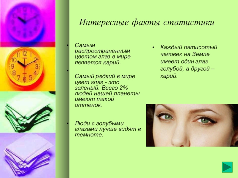 Каждый пятисотый человек на Земле имеет один глаз голубой, а другой – карий.
