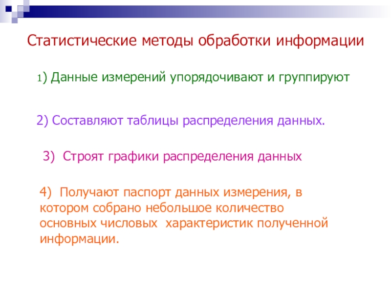 4) Получают паспорт данных измерения, в котором собрано небольшое количество основных числовых характеристик полученной информации.