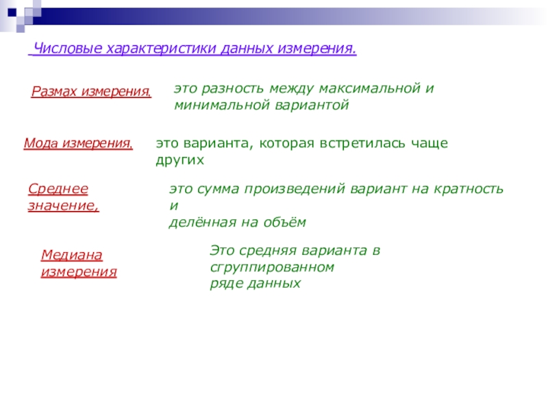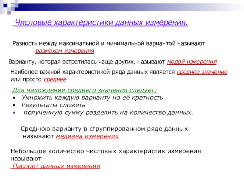 Небольшое количество числовых характеристик измерения называют