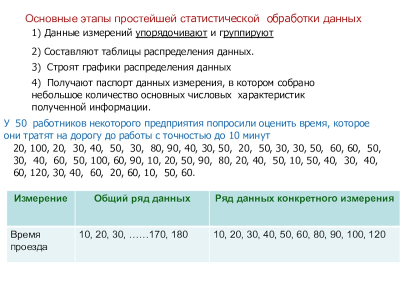 У 50 работников некоторого предприятия попросили оценить время, которое они тратят на дорогу до работы с точностью до 10 минут