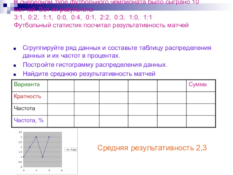 Сгруппируйте ряд данных и составьте таблицу распределения данных и их частот в процентах.
