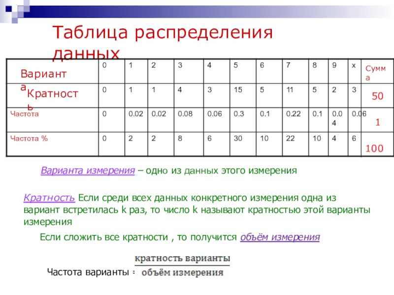 Таблица распределения данных