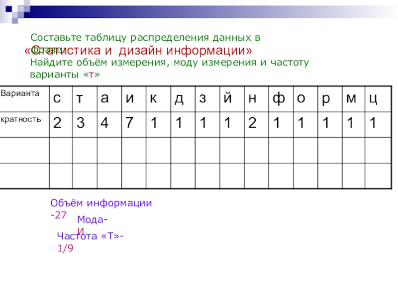 Найдите объём измерения, моду измерения и частоту варианты «т»