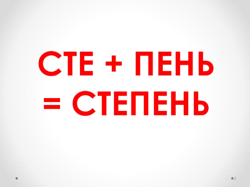 Слайд 2СТЕ + ПЕНЬ = СТЕПЕНЬ
