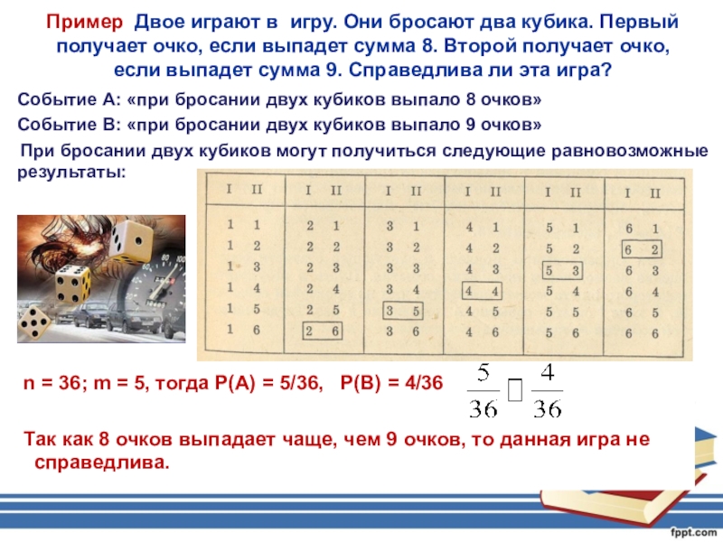 Так как 8 очков выпадает чаще, чем 9 очков, то данная игра не справедлива.