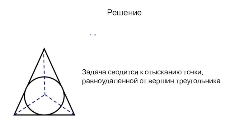 Задача сводится к отысканию точки, равноудаленной от вершин треугольника