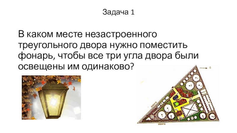 В каком месте незастроенного треугольного двора нужно поместить фонарь, чтобы