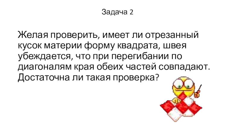 убеждается, что при перегибании по диагоналям края обеих частей совпадают. Достаточна ли такая проверка?