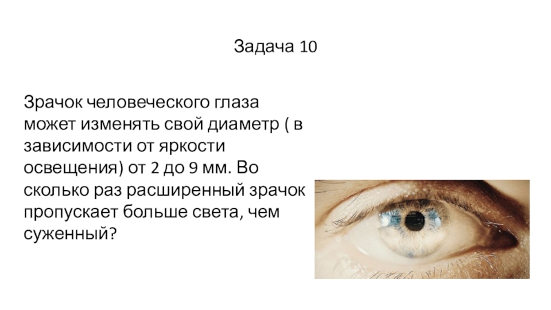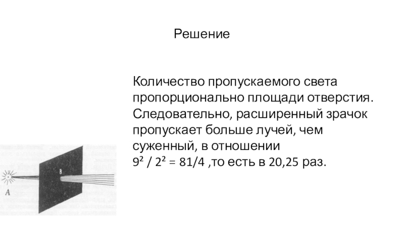 от яркости освещения) от 2 до 9 мм. Во сколько раз расширенный зрачок пропускает больше света, чем суженный?