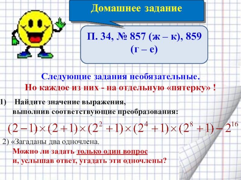 и, услышав ответ, угадать эти одночлены?