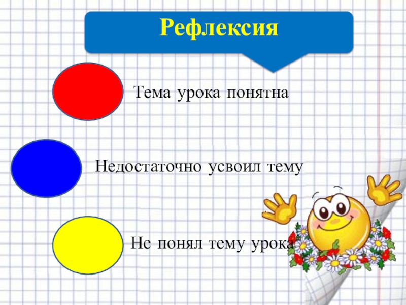 РефлексияНе понял тему урокаТема урока понятнаНедостаточно усвоил тему