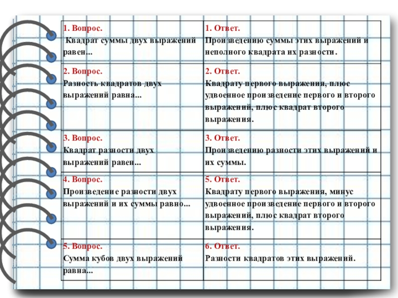 Цель урока: систематизировать и обобщить знания по теме ”Формулы сокращенного умножения”; продолжить формирование познавательной активности, умения логически