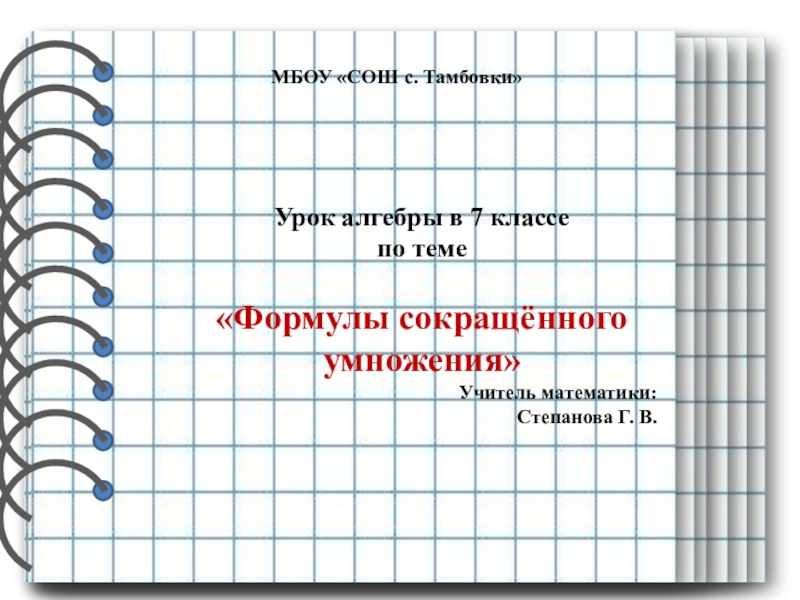 МБОУ «СОШ с. Тамбовки»Урок алгебры в 7 классепо теме«Формулы сокращённого умножения»Учитель математики: Степанова Г. В.