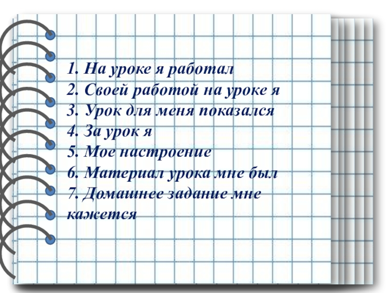 1. На уроке я работал2. Своей работой на уроке я3. Урок для меня показался4. За урок я5.