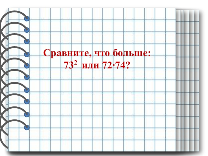Слайд 15Сравните, что больше: 732 или 72∙74?