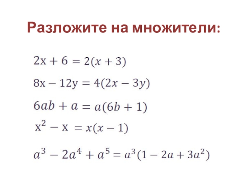 Презентация, доклад к уроку алгебры (7класс) : Вынесение общего множителя за скобки