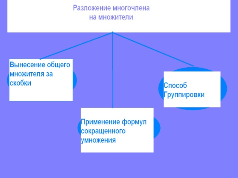 Представление многочлена в виде произведения двух или более многочленов называют разложением многочлена на множители