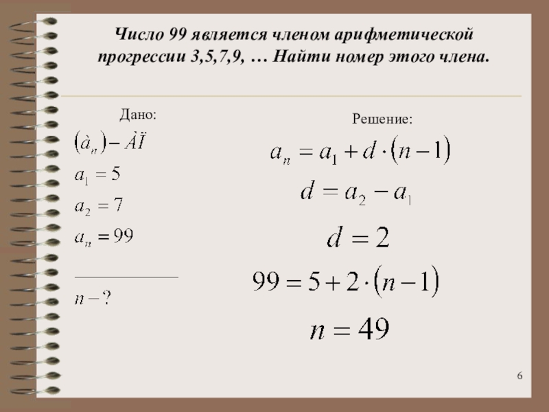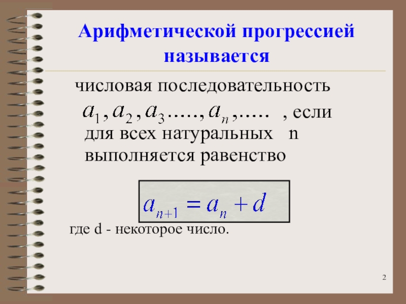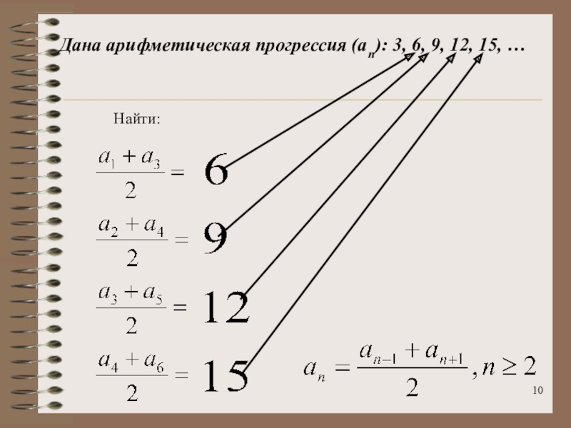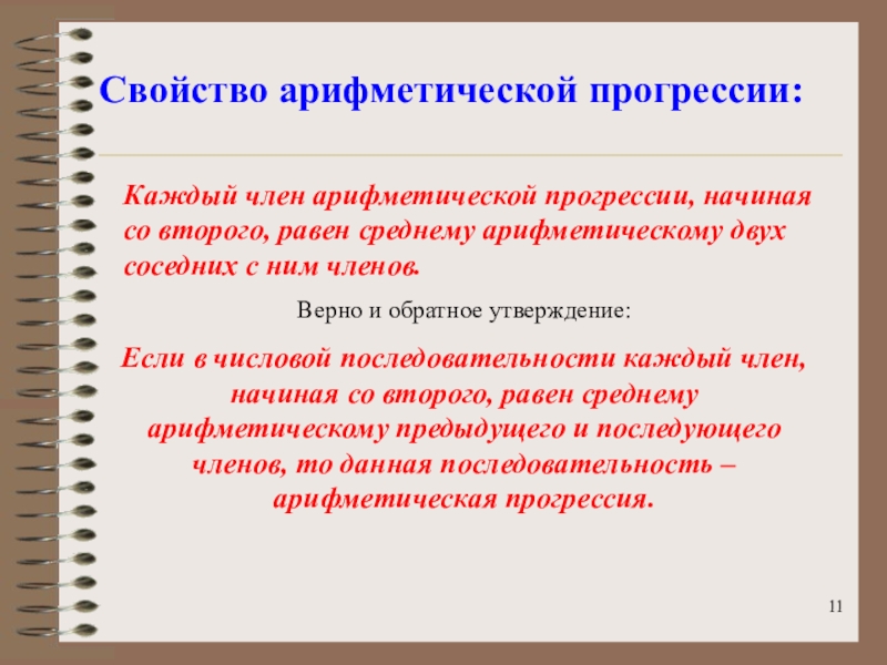 Если в числовой последовательности каждый член, начиная со второго, равен среднему арифметическому предыдущего и последующего членов, то данная последовательность – арифметическая прогрессия.