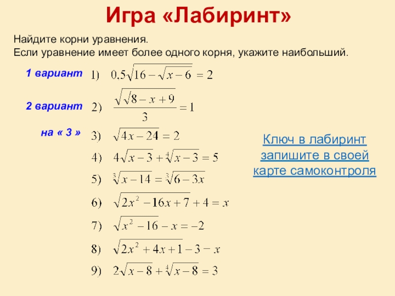 Ключ в лабиринт запишите в своей карте самоконтроля