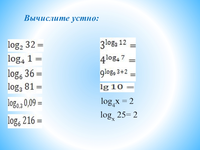 Презентация, доклад к уроку алгебры и начала математического по теме Логарифмы. Свойства логарифмов (10 класс)
