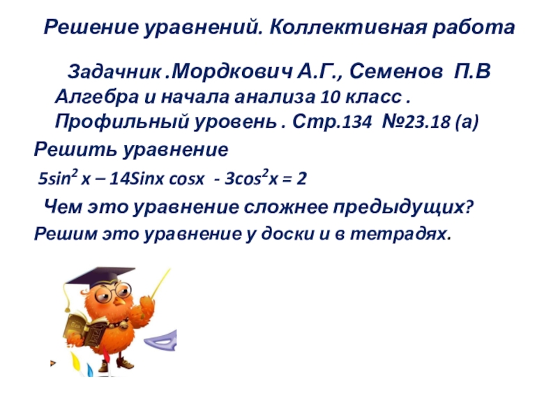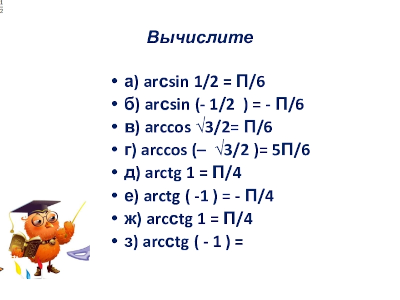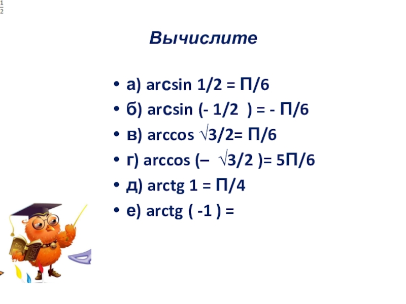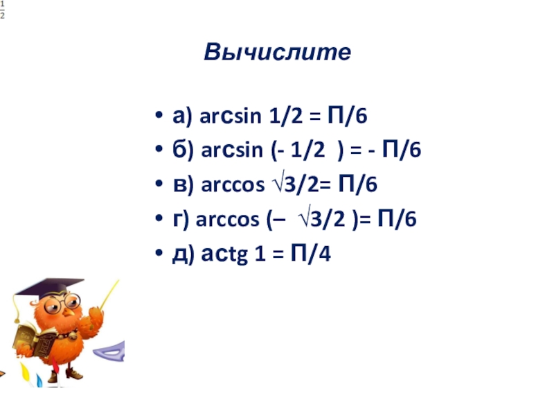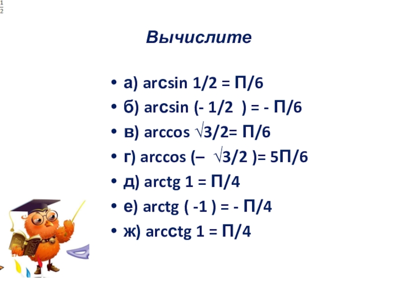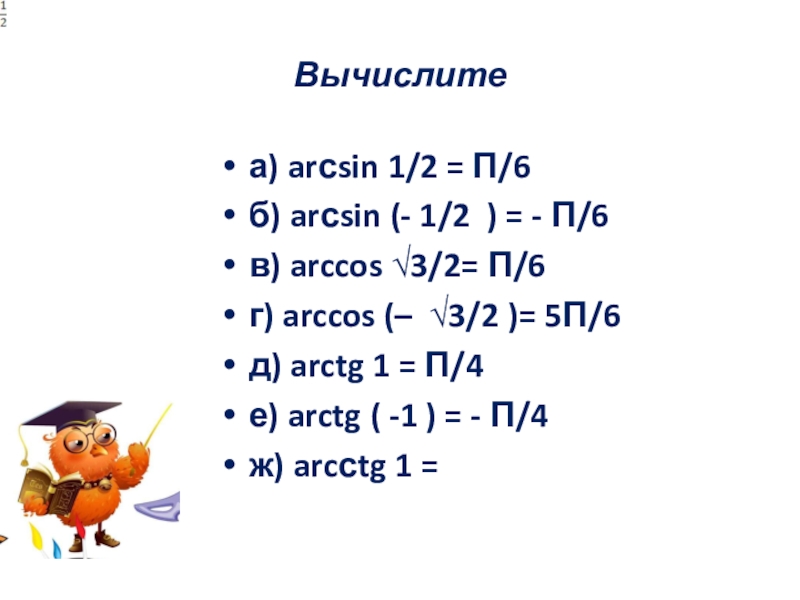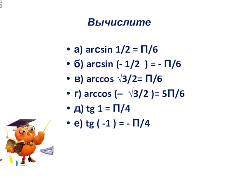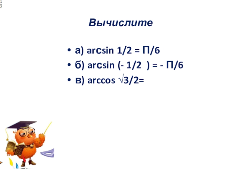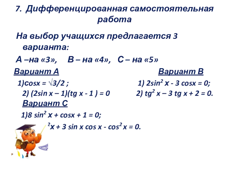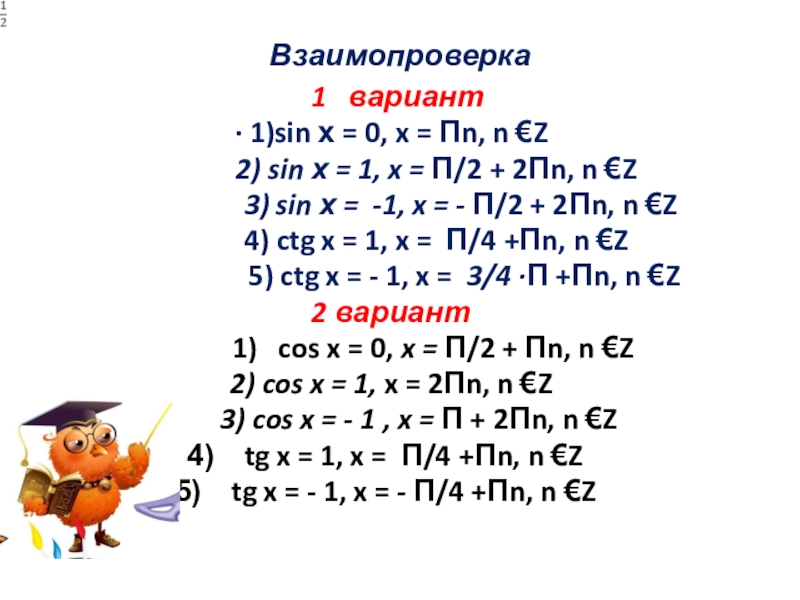 1)сosx = √3/2 ; 1) 2sin2 х - 3 cosx = 0; 2) (2sin x – 1)(tg x - 1 ) = 0 2) tg2 x – 3 tg x + 2 = 0. Вариант С