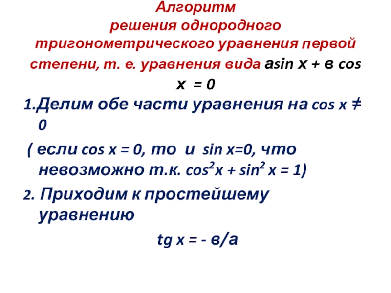 решения однородного тригонометрического уравнения первой степени, т. е. уравнения вида