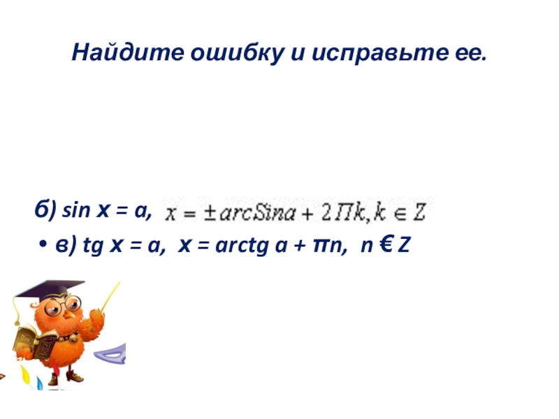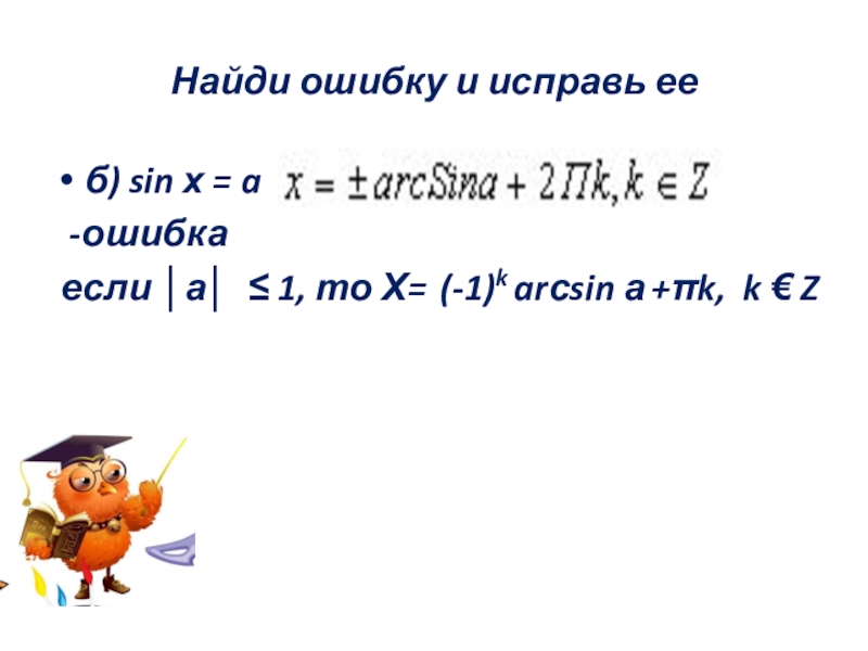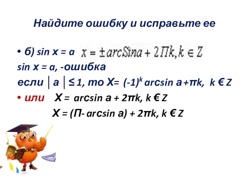 если │а │≤ 1, то Х= (-1)k arсsin а +πk, k € Z