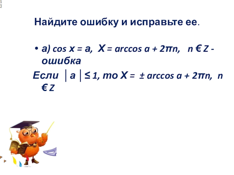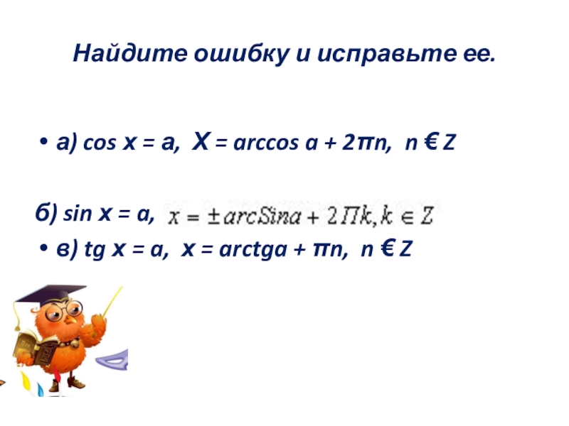 Если │а │≤ 1, то Х = ± arccos a + 2πn, n € Z