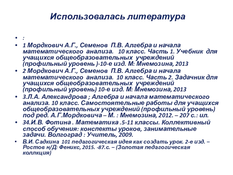 34.И.В. Фотина . Математика .5-11 классы. Коллективный способ обучения: конспекты уроков, занимательные задачи. Волгоград : Учитель, 2009.
