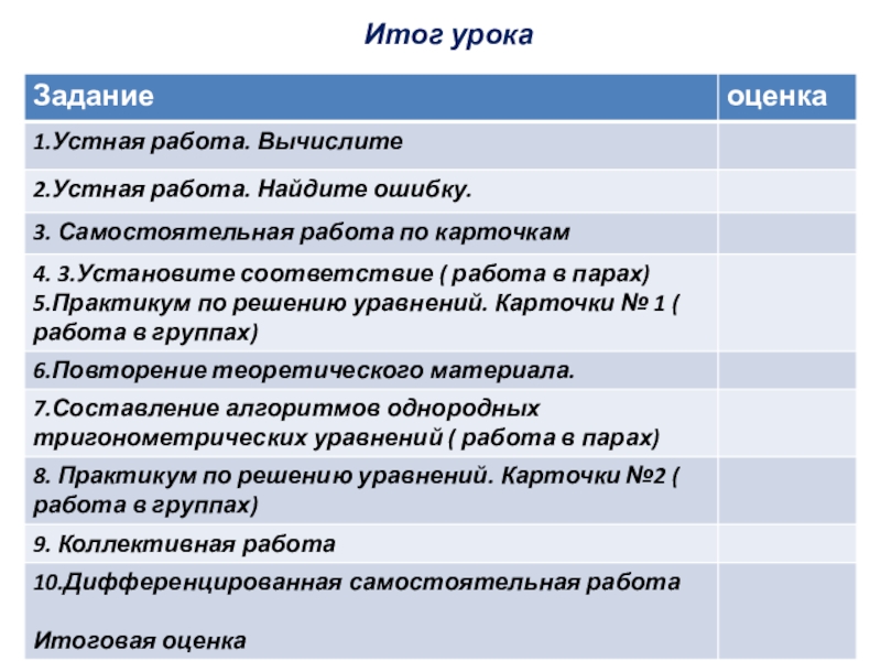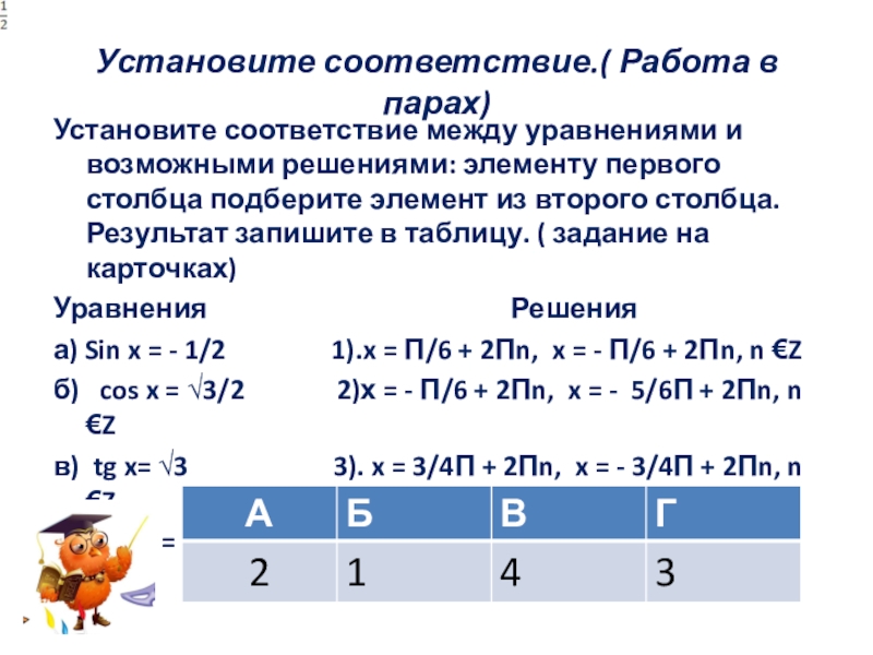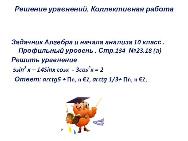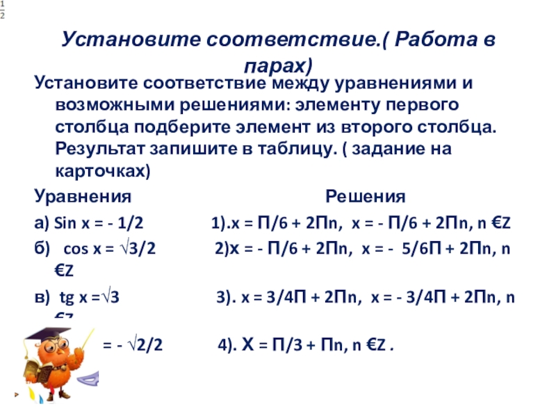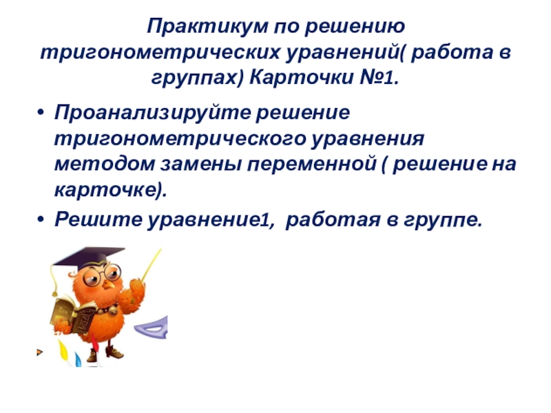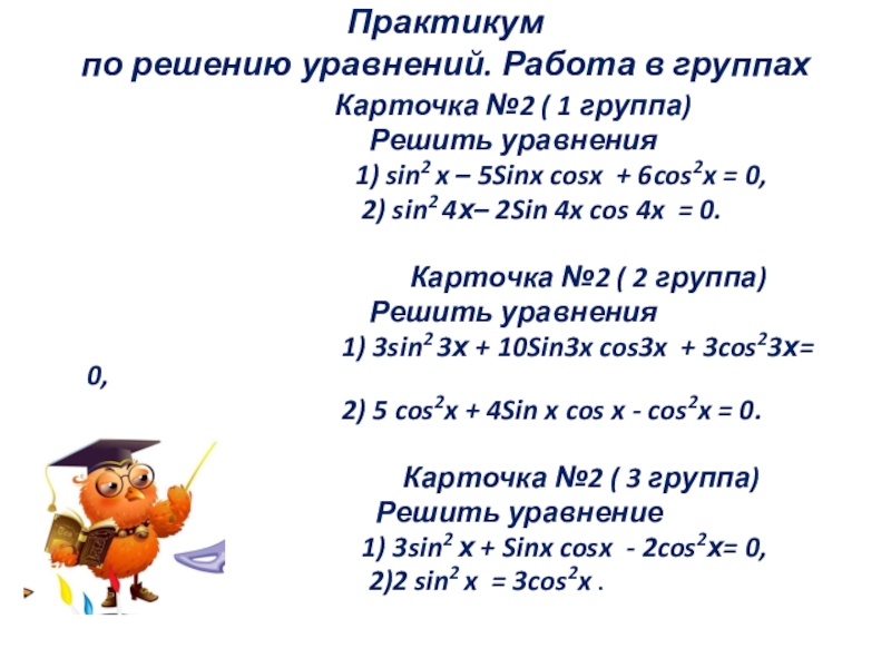 Слайд 29Практикум по решению тригонометрических уравнений( работа в группах) Карточки №1.