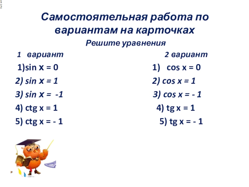 Слайд 25Самостоятельная работа по вариантам на карточках
