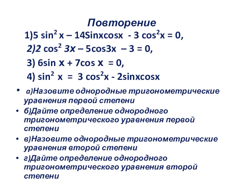 г)Дайте определение однородного тригонометрического уравнения второй степени