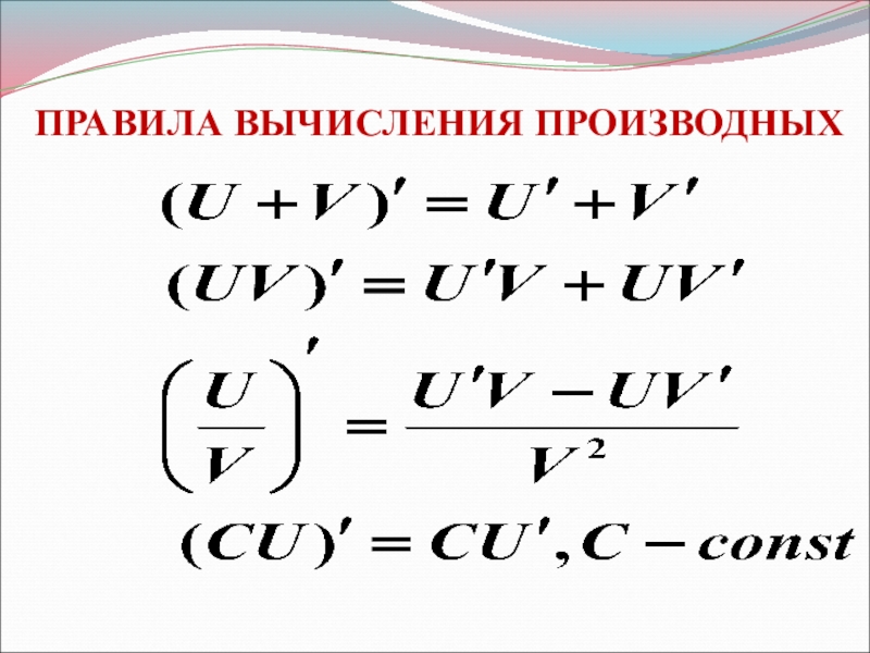 Слайд 3ПРАВИЛА ВЫЧИСЛЕНИЯ ПРОИЗВОДНЫХ
