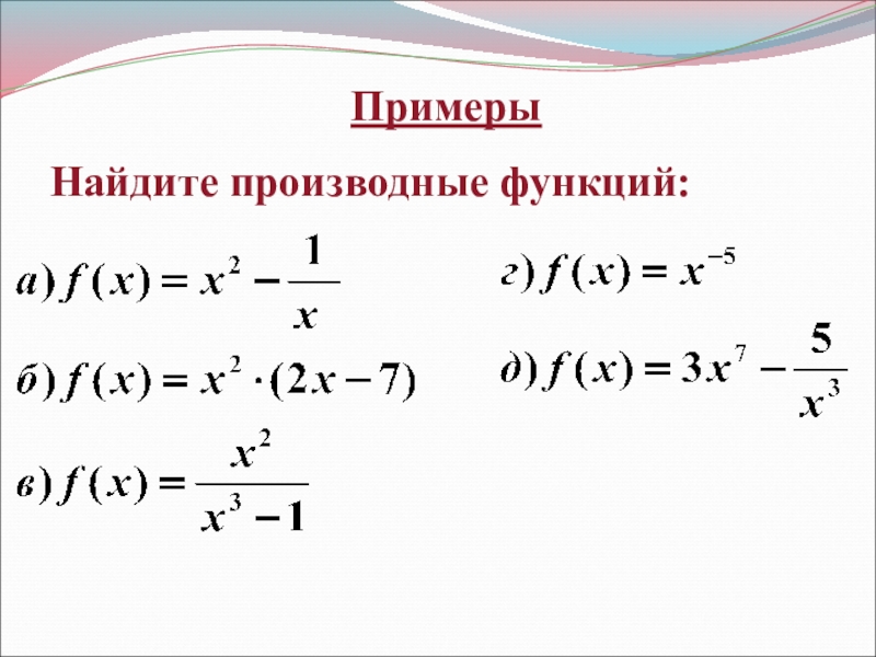 ПримерыНайдите производные функций: