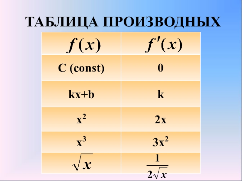 Слайд 2ТАБЛИЦА ПРОИЗВОДНЫХ
