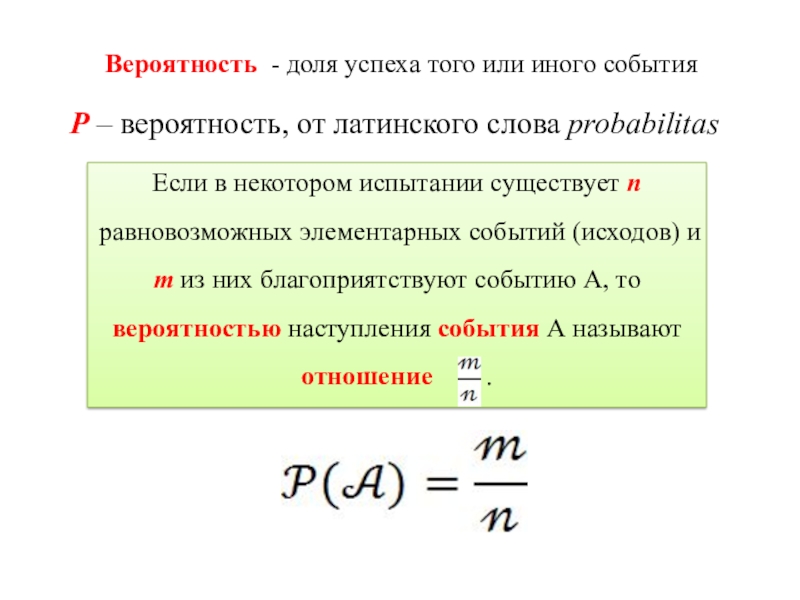 Элементарные события (исходы) – это попарно несовместные события, одно из которых обязательно происходит в результате испытания