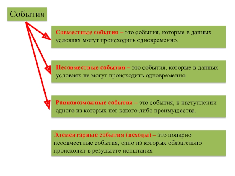 Несовместные события – это события, которые в данных условиях не могут происходить одновременно
