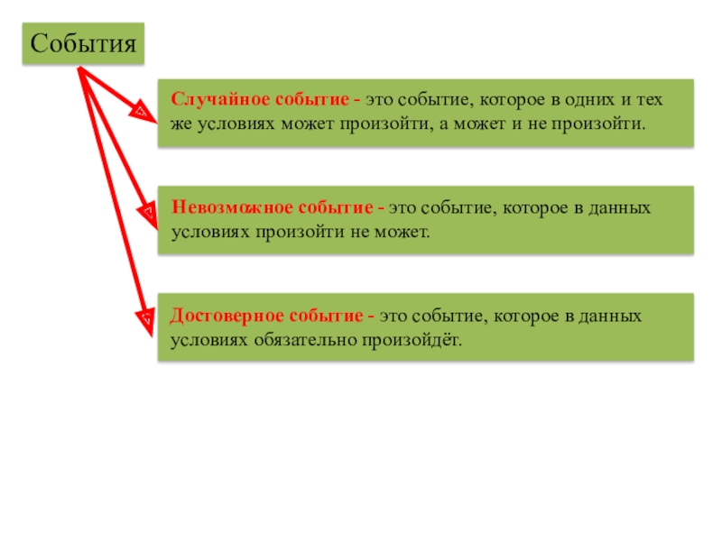 Невозможное событие - это событие, которое в данных условиях произойти не может.