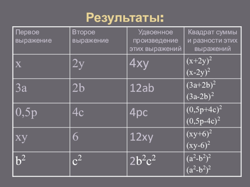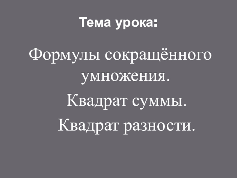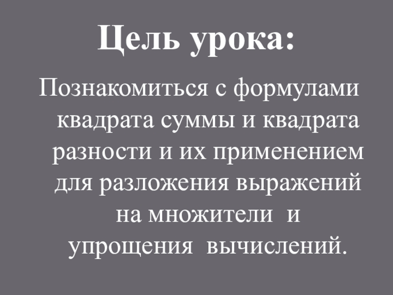 Познакомиться с формулами квадрата суммы и квадрата разности и их