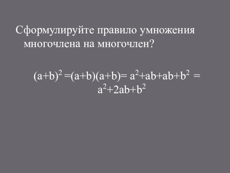 (a+b)2 =(a+b)(a+b)= a2+ab+ab+b2