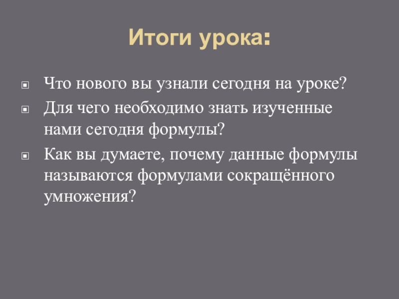 Как вы думаете, почему данные формулы называются формулами сокращённого умножения?