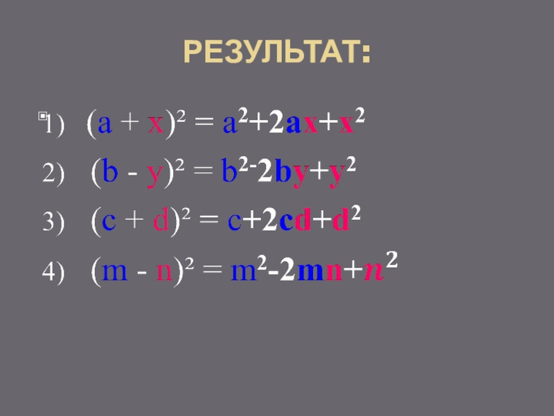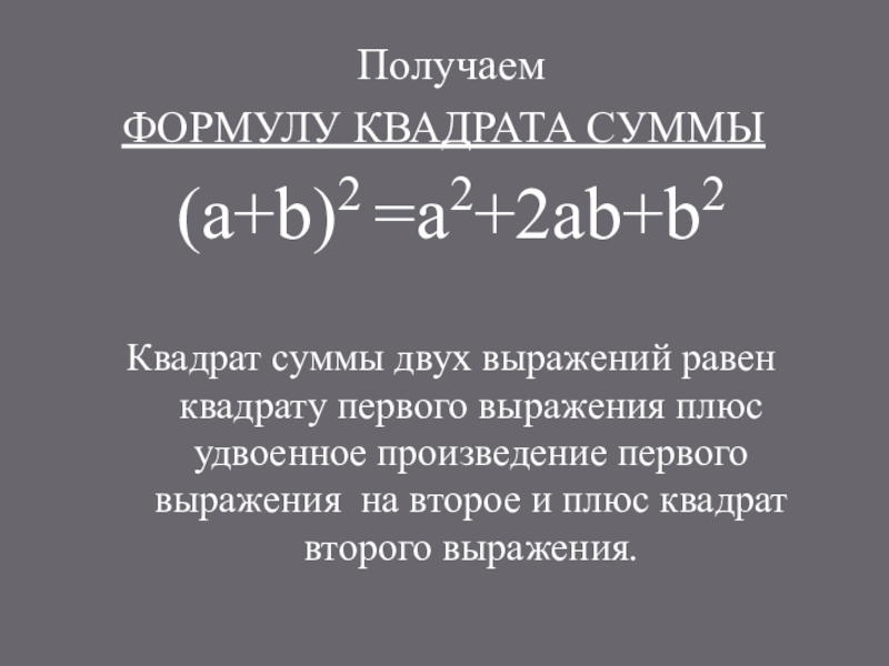 ФОРМУЛУ КВАДРАТА СУММЫ