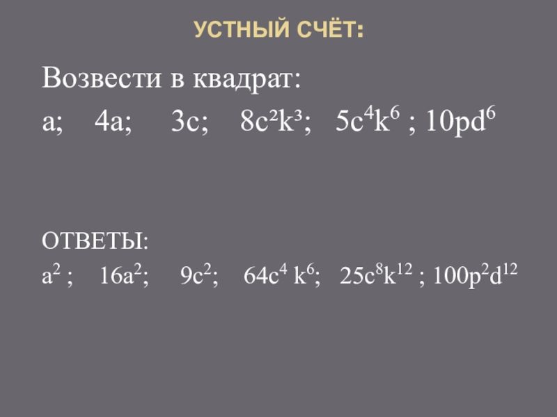 a2 ; 16а2; 9c2; 64с4 k6; 25с8k12 ; 100p2d12