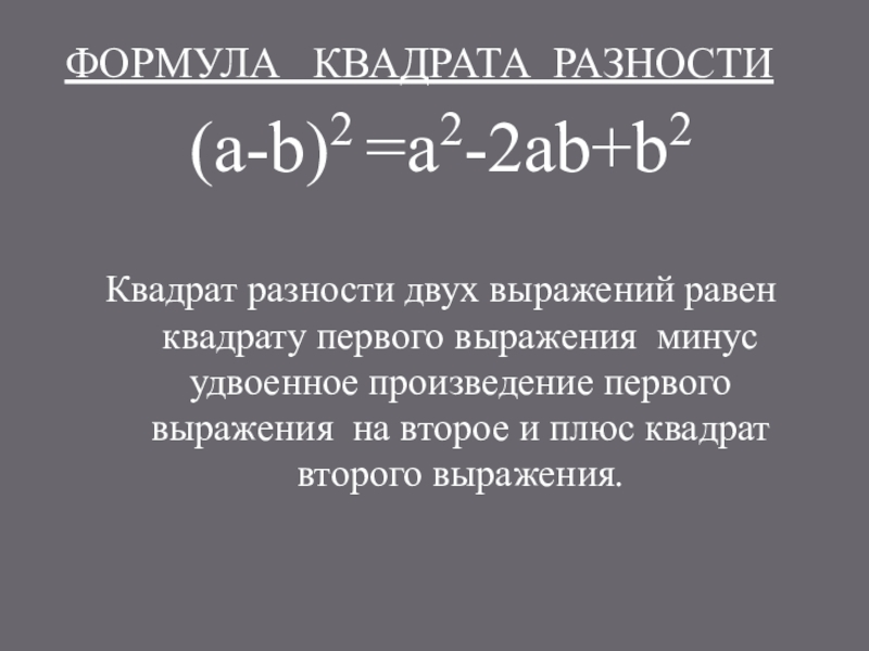 Слайд 11ФОРМУЛА КВАДРАТА РАЗНОСТИ