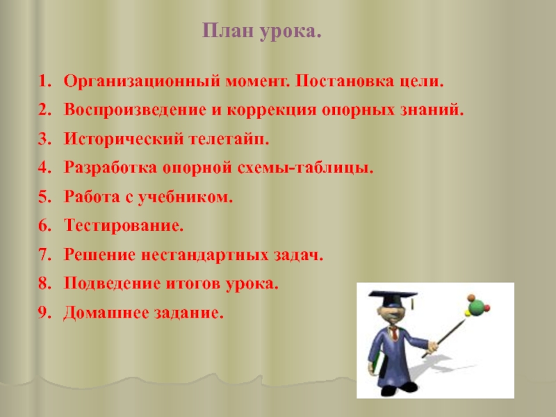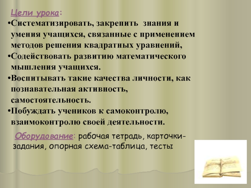Оборудование: рабочая тетрадь, карточки-задания, опорная схема-таблица, тесты