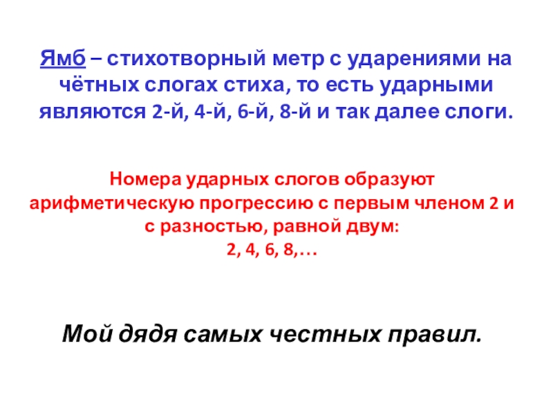 Номера ударных слогов образуют арифметическую прогрессию с первым членом 2 и с разностью, равной двум: