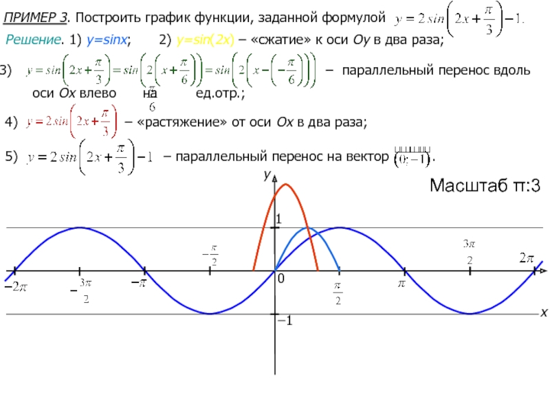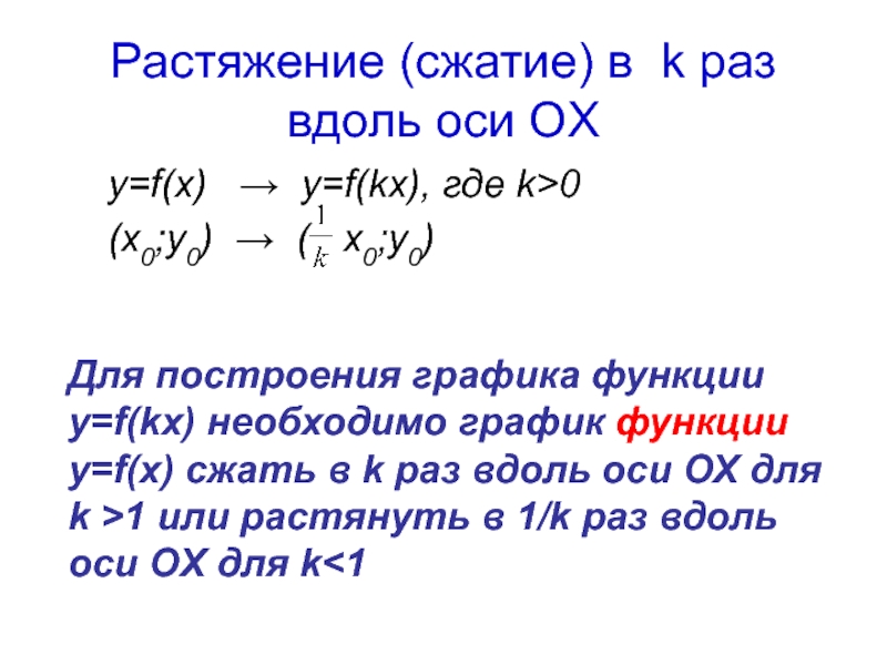 Для построения графика функции y=f(kx) необходимо график функции y=f(x) сжать в k раз вдоль оси ОХ для k >1 или растянуть в 1/k раз вдоль оси OХ для k<1