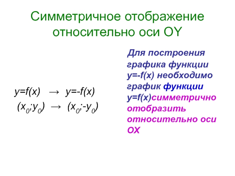 Для построения графика функции y=-f(x) необходимо график функции y=f(x)симметрично отобразить относительно оси ОХ