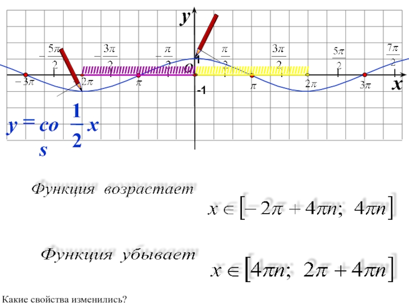 Какие свойства изменились в сравнении с функцией y=cos x?