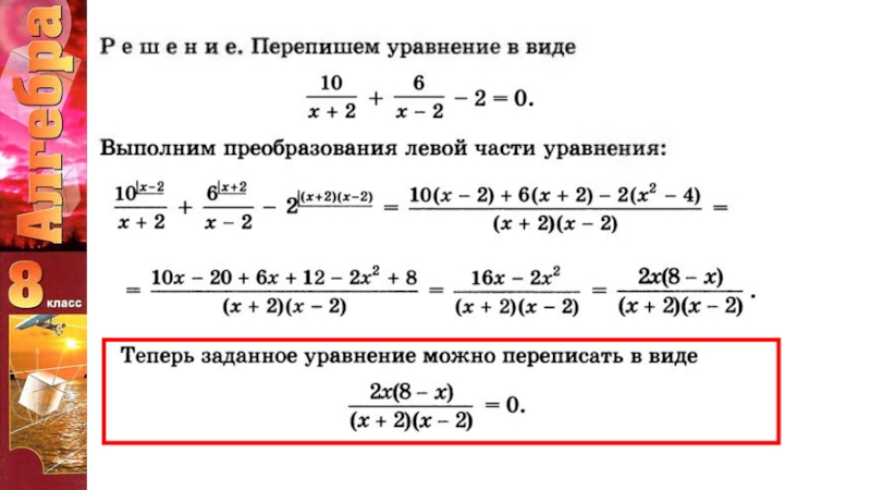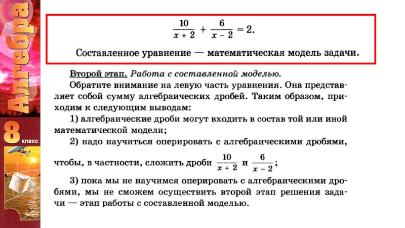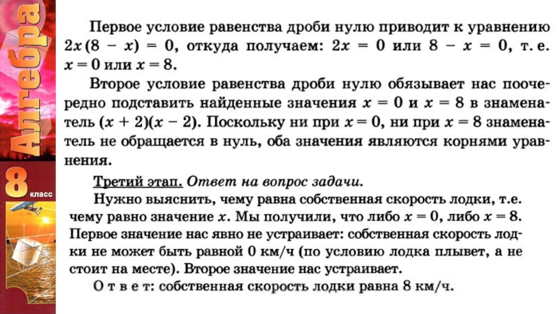 Презентация, доклад к уроку алгебры Рациональные дроби (Решение задач) 8 класс